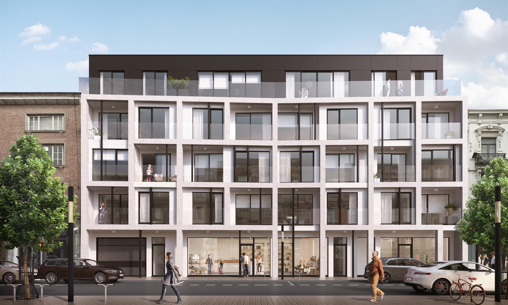 RESIDENTIE RYSSEL, vlakbij de Grote Markt met een prachtig zicht op het historische Stadhuis van Kortrijk. Het volledige project is voorzien van ruime zuidgeoriënteerde zonneterrassen. Dit prachtig black & white appartementsgebouw, is functioneel ontworpen met duurzame en esthetisch verantwoorde materialen. Het project omvat 12 appartementen met een oppervlakte van ± 100 m² en 2 penthouses van 180 m² . Ondergronds 25 standplaatsen (waarvan 3 dubbele), 1 garagebox en 14 kelders.